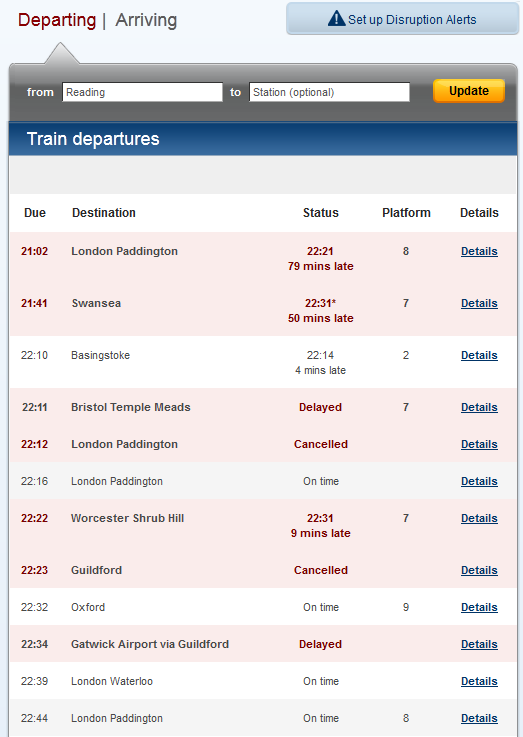 It’s a simple but clever idea, probably relatively straightforward to implement on a wi-fi enabled bus (I told you we had a good bus network!). Reading is a commuter-town, and now we know about the status of the service before we’ve arrived (which can be important on a day like today!). We know whether we have time to grab that coffee, or whether we need to rush for the next fast train.